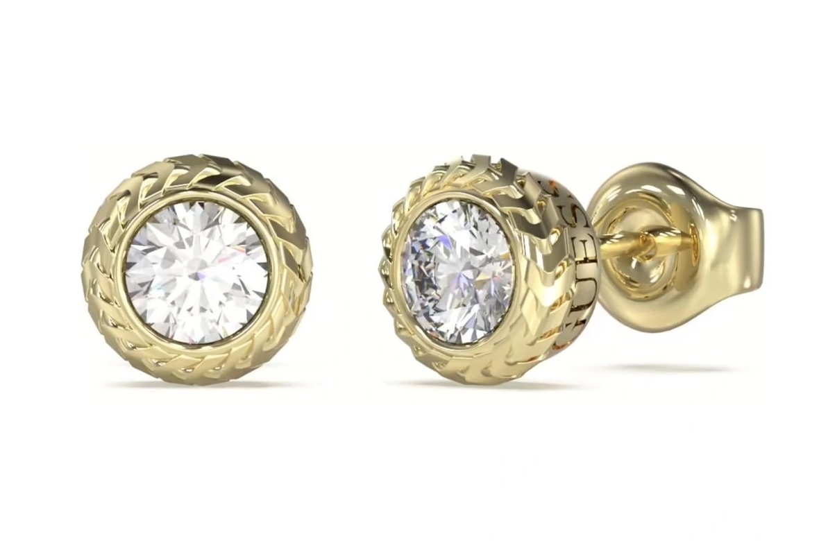 Guess Pozlátené náušnice s čírymi zirkónmi Sailor Knot JUME05022JWYGT/U