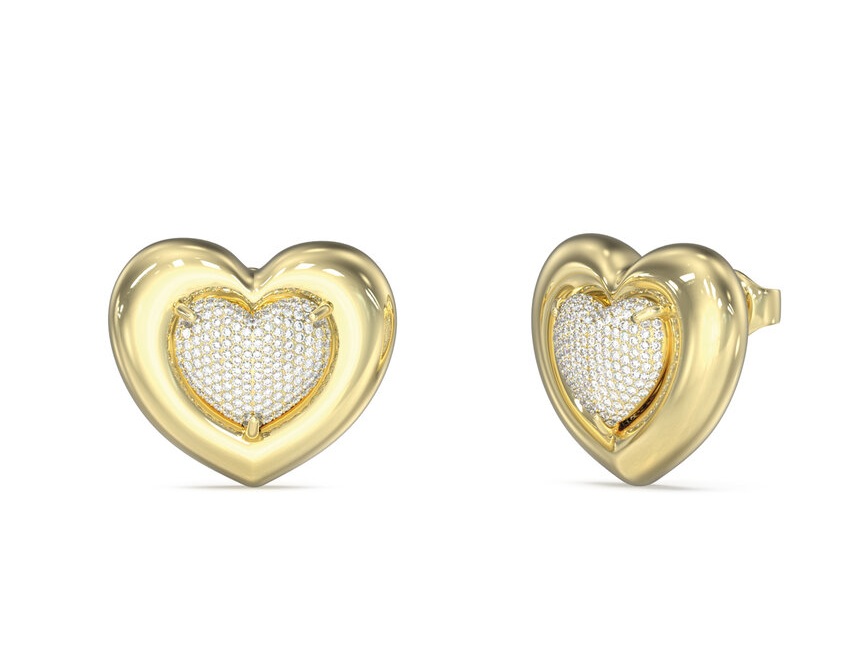Guess Pozlátené srdiečkové náušnice s kryštálmi LOVE JUBE05459JWYGT/U