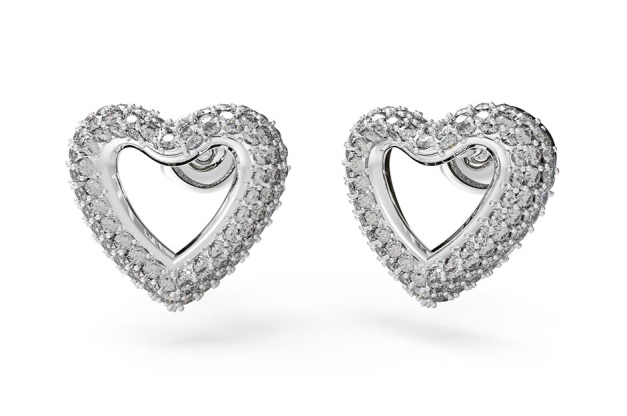 Guess Srdiečkové oceľové náušnice s kryštálmi Beloved JUBE05028JWRHT/U