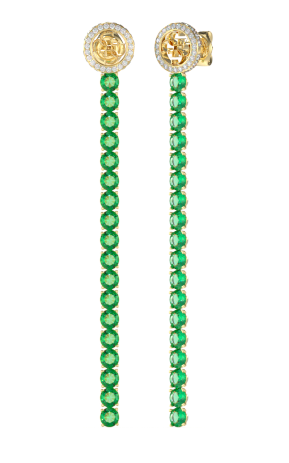 Guess Výrazné pozlátené náušnice so zelenými kryštálmi Paradise JUBE05144JWYGGNT/U