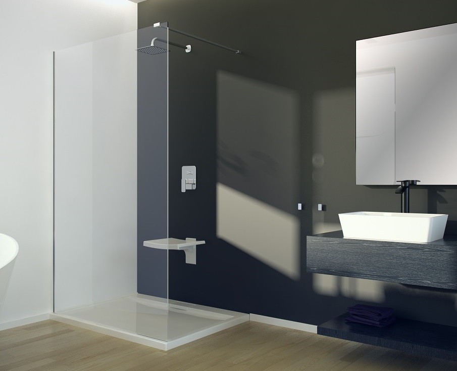 MEXEN/S - Kioto L Sprchová zástena WALK-IN 90 x 200, transparent/dekor, grafit metal 800-090-103-95-35