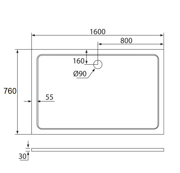 MEXEN/S - Stone+ obdĺžniková sprchová vanička 160 x 80, biela, mriežka biela 44108016-W