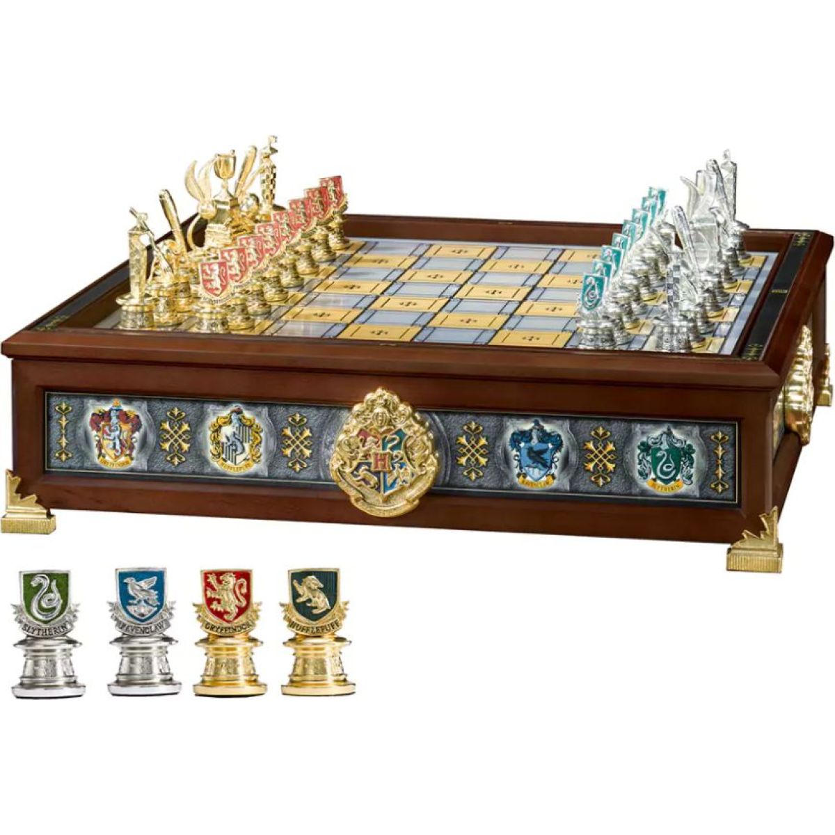 Táto šachová sada z dielne Noble Collection prináša kúzlo do každej hry. Vyberte si svoju obľúbenú bradavickú fakultu a pustite sa do strategického boja! Či už si vyberiete Zmijozel, Nebelvír, Havraspár alebo Mrzimor, určite zažijete nezabudnuteľný zážitok. Oficiálne licencované, veľkosť cca 33 × 33 × 7 cm.