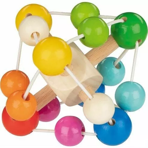 Drevené hrkálka v tvare elipsoidu zaujme bábätko pestrofarebným prevedením a netradičným tvarom. Pohybom sa ozýva jemné cinkanie pohyblivých drevených guličiek, ktoré podporuje pozornosť a zvedavosť.