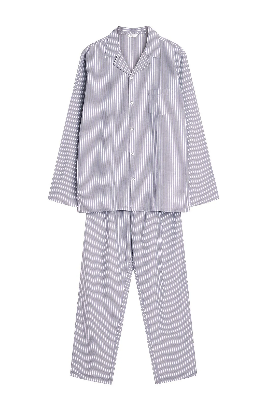 Pánske pyžamo so zipsom - tenká pruhovaná bavlnená tkanina - blúzka s dlhými rukávmi - s golierom, zapínanie na gombíky vpredu - našité náprsné vrecko - dlhé nohavice s bočnými rozparky - zabalené v krabici Zloženie: 100 % bavlna