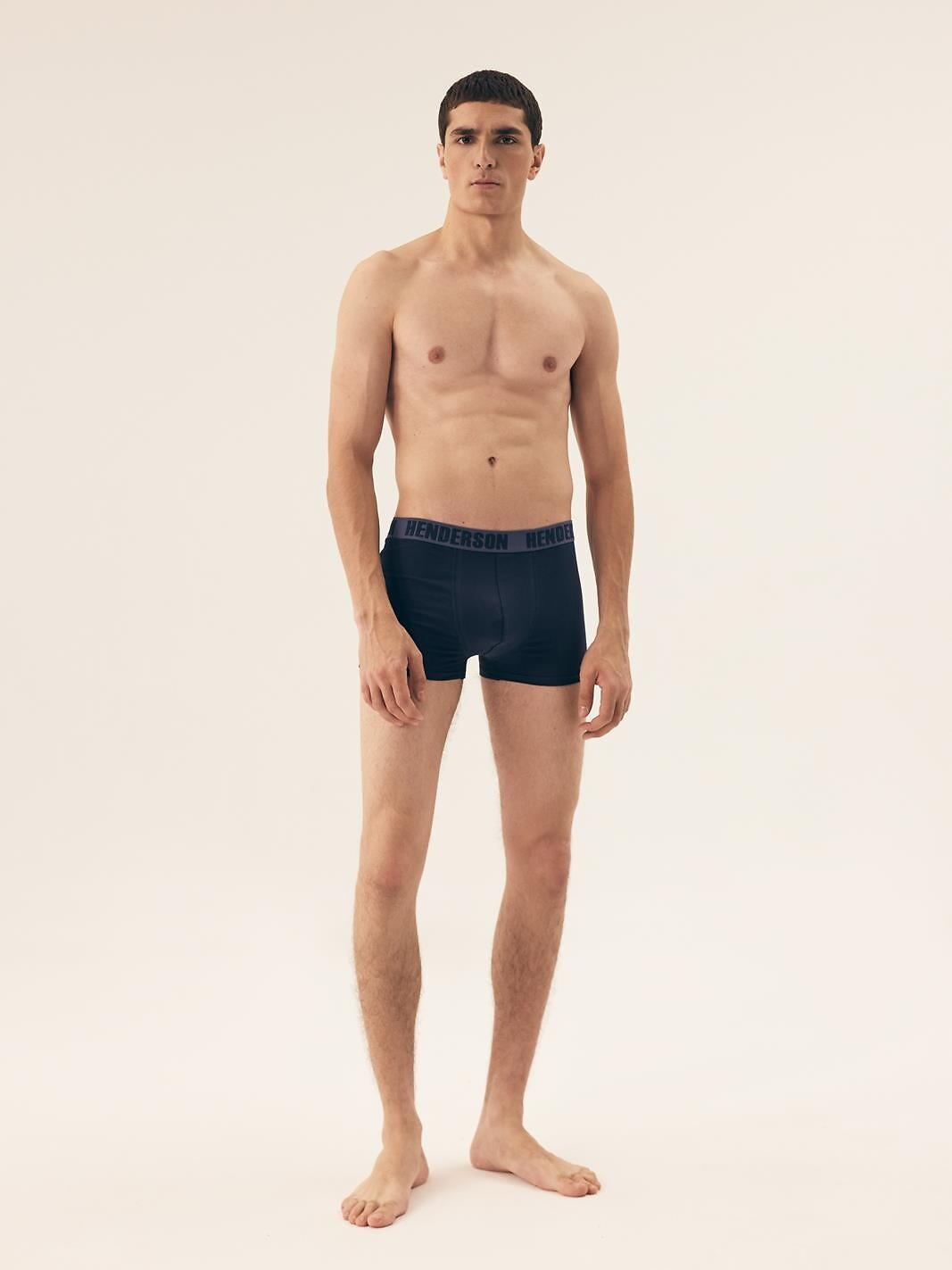 Pánske boxerky - vysokokvalitná bavlna - široký elastický pás s logom spoločnosti - krátke nohavice - v balení po dvoch kusoch: tmavomodré hladké a tmavomodré vzorované Zloženie: 95 % bavlna, 5 % elastan