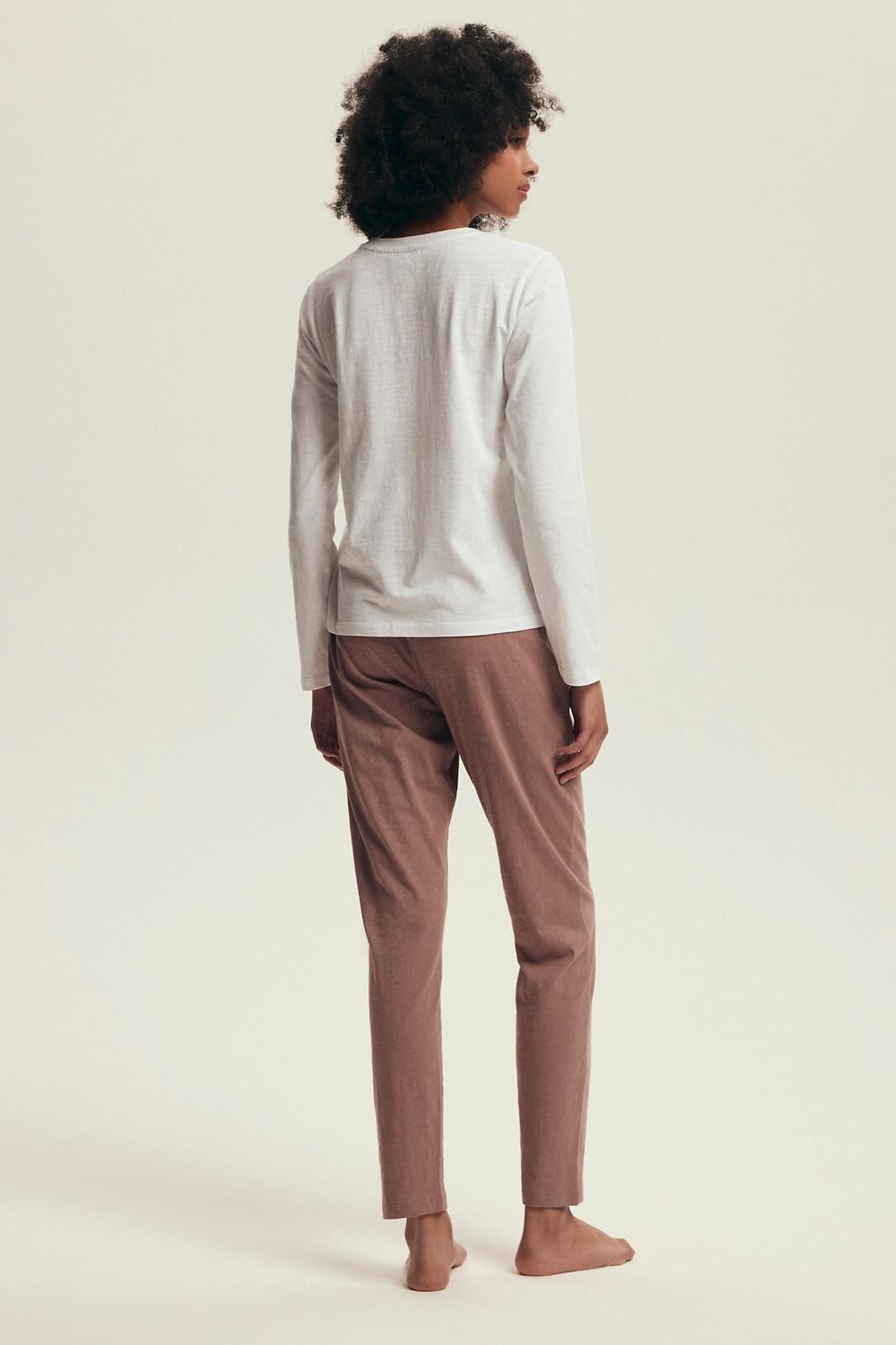 Dámske bavlnené pyžamo - tričko s dlhým rukávom - okrúhly výstrih - vpredu s ozdobnou grafikou - dlhé nohavice na doplnenie súpravy - široký elastický pás - balené v plastovom vrecku Zloženie: 100 % bavlna
