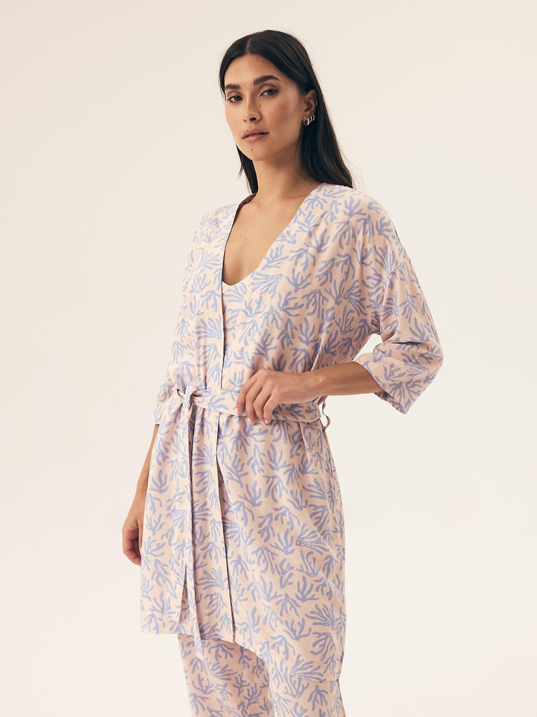 Dámsky župan - vysokokvalitná vzorovaná viskóza - dĺžka rukávov 7/8 - zaväzovanie v páse Zloženie: 100 % viskóza