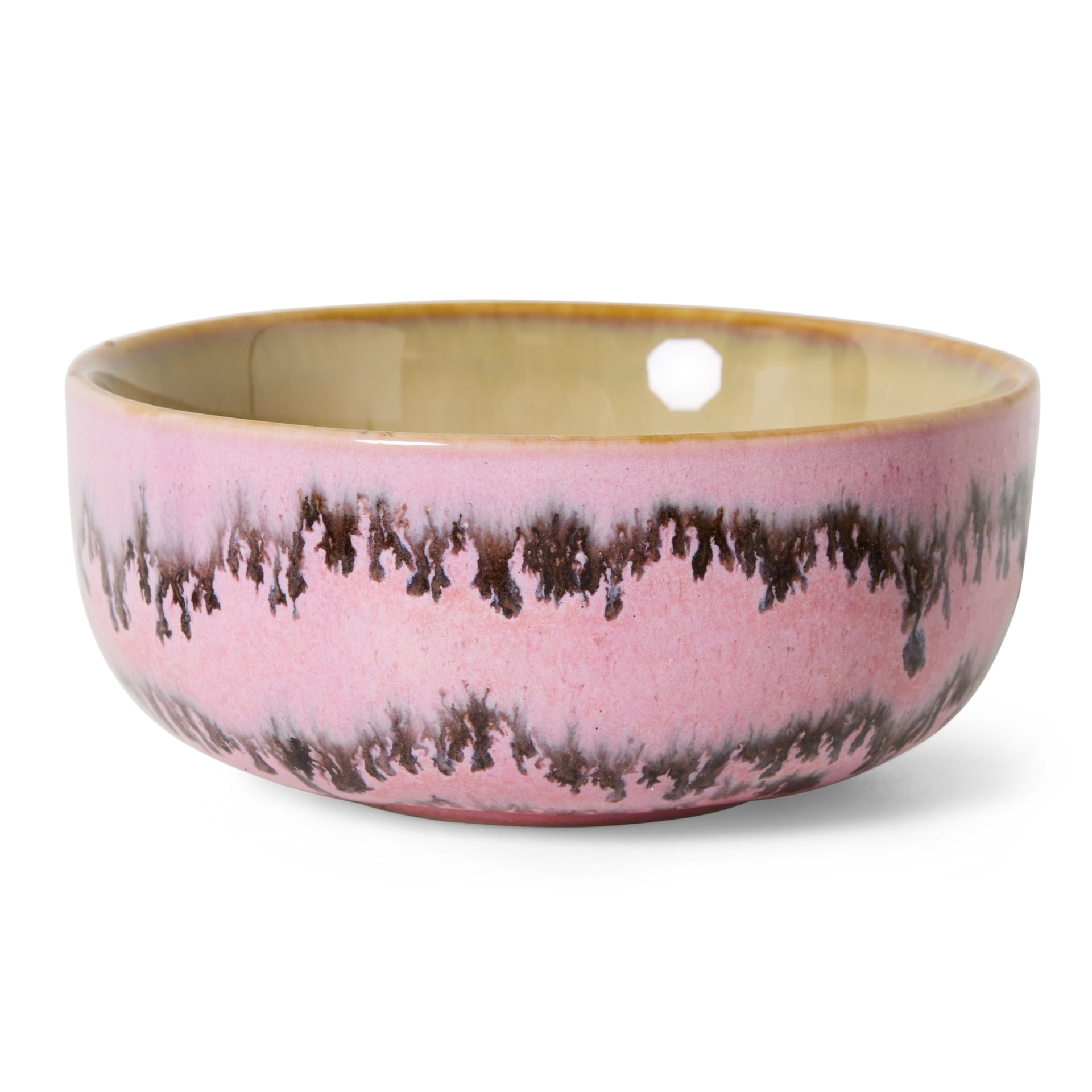 Sedmdesátková kolekce od značky HK living je plná pestrobarevného nádobí, které v člověku probouzí fantazii a rozzáří den. Kameninové nádobí definuje výrazný dekor vzniklý vlivem reaktivní glazury. Ta při výpalu kouzlí neopakovatelné odstíny a vzory, takže každý kus misky je naprostý originál.