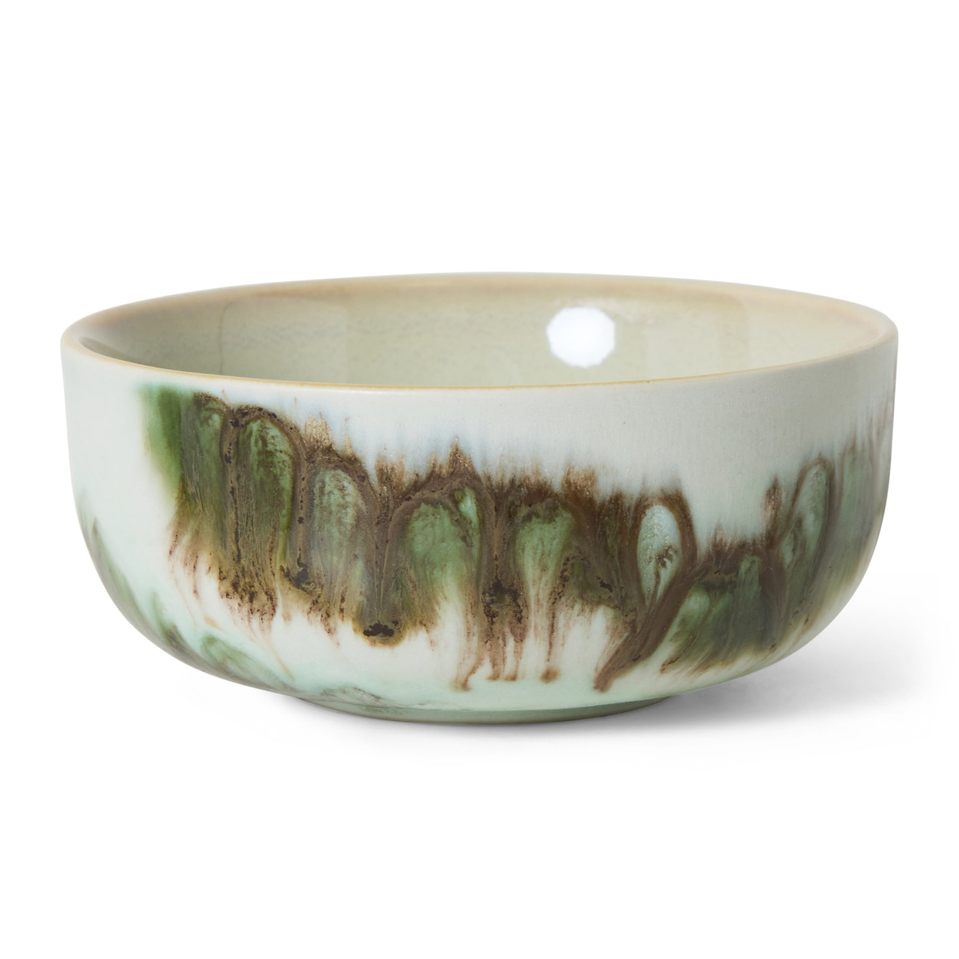Sedmdesátková kolekce od značky HK living je plná pestrobarevného nádobí, které v člověku probouzí fantazii a rozzáří den. Kameninové nádobí definuje výrazný dekor vzniklý vlivem reaktivní glazury. Ta při výpalu kouzlí neopakovatelné odstíny a vzory, takže každý kus misky je naprostý originál.