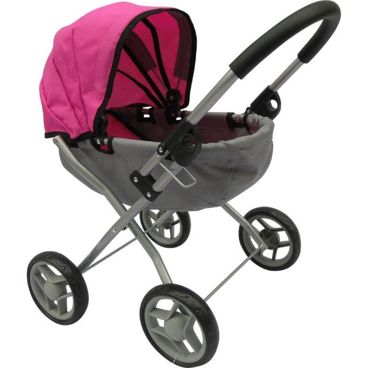 Hlboký kočík v šedo-ružovej farbe. Konštrukcia je pevná, kovová s plastovými prvkami, to všetko v kvalitnom prevedení.