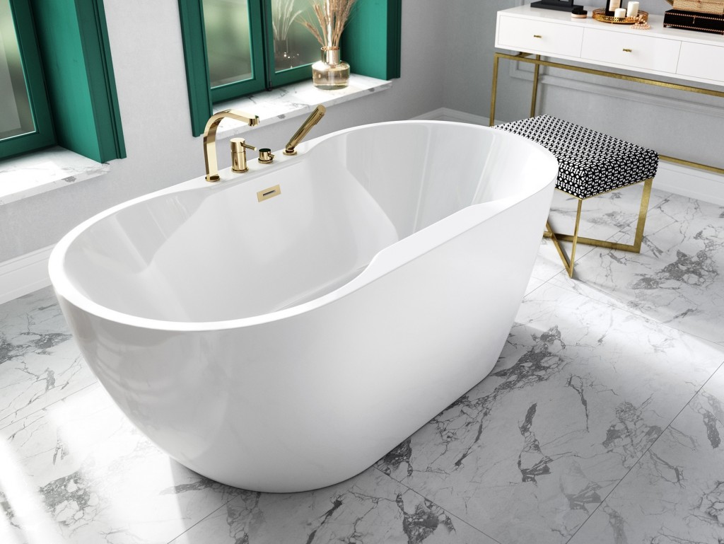 Domov Nábytok Kúpeľňa Vane a príslušenstvo Vane BESCO - Voľne stojaca vaňa NAVIA - Farba - Biela, Farba sifónu - Grafitová, Rozmer vane - 160 × 80 cm VANNAVIA160G