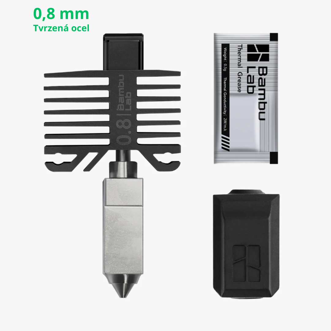Tento hotend z kalenej ocele je vhodný na tlač abrazívnych materiálov (ESD, nehorľavé materiály, uhlíkové vlákna, sklenené vlákna...).