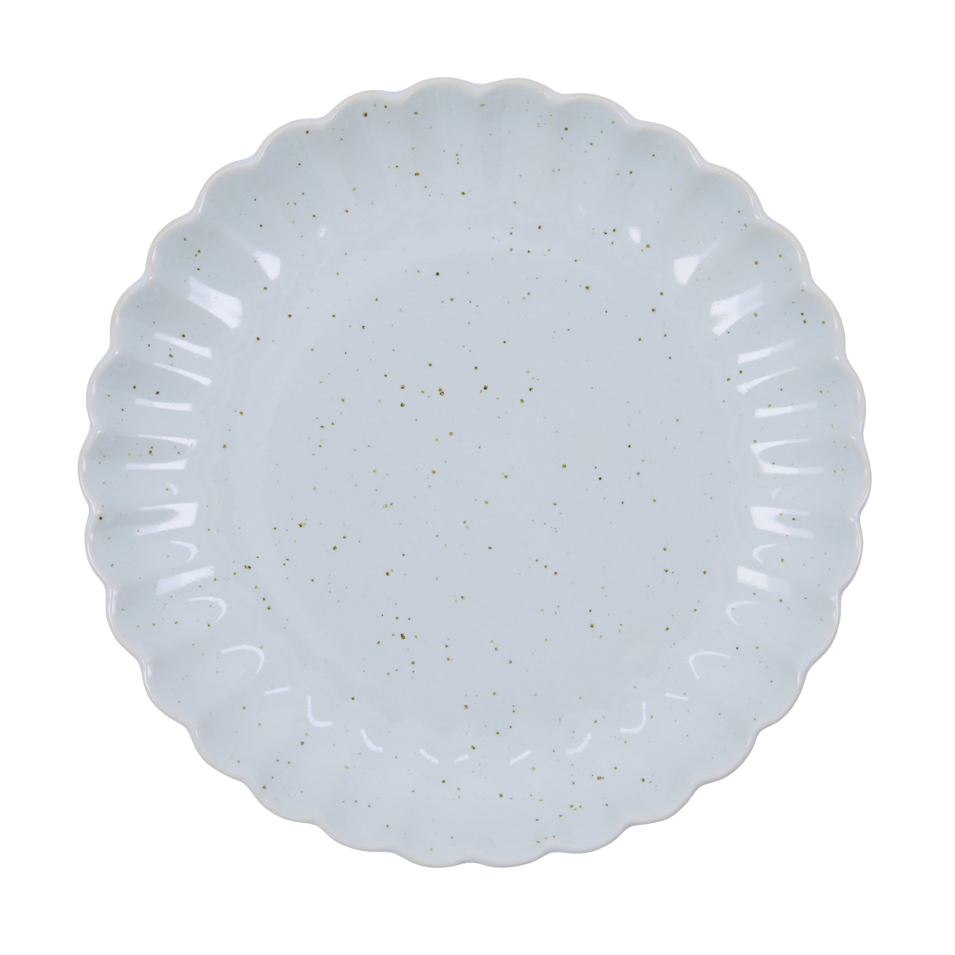 Je vyrobený z kameniny s reaktívnou svetlomodrou glazúrou a dekoratívnym zvlneným okrajom. Veľkosť je ideálna nielen na dezert ku káve, ale aj na servírovanie predjedál, desiatej alebo menších porcií jedla. priemer 20 cm Vyrobené z kameniny.