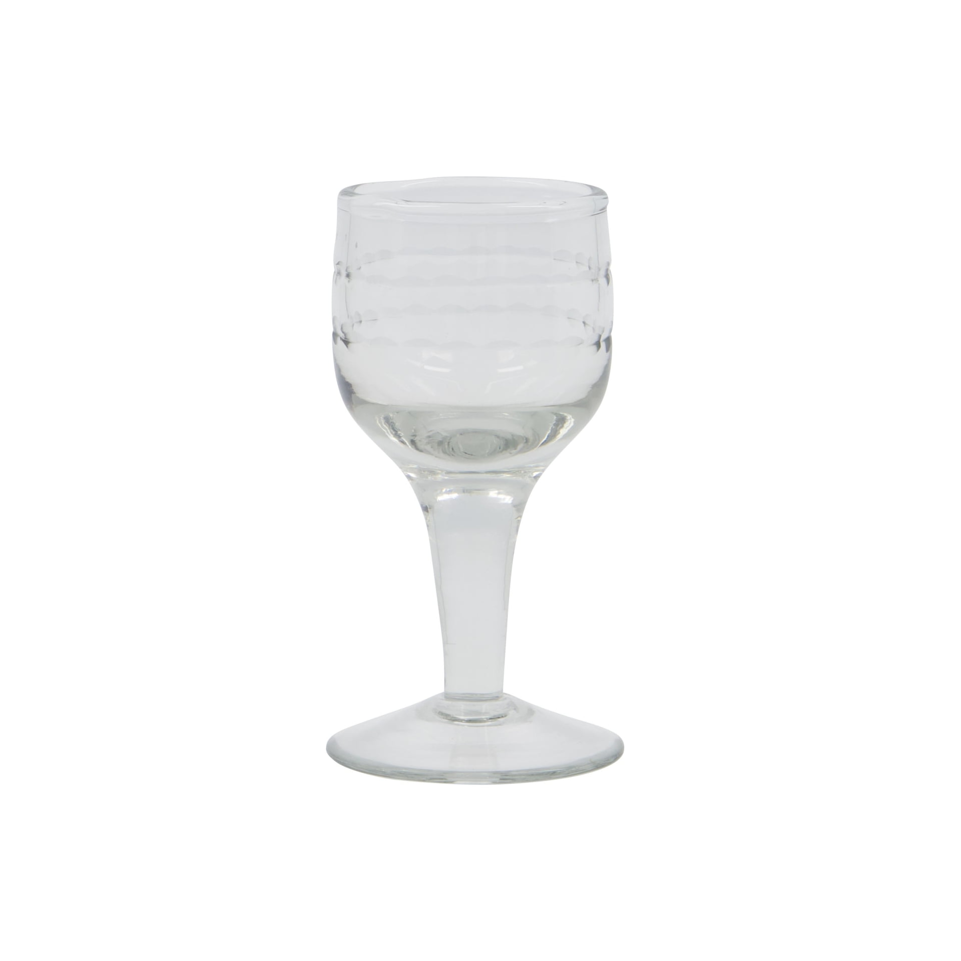 Pohár je na vysokej stopke, je vyrobený z ručne fúkaného skla a má aj ručne vyrobené detaily. Nadčasový dizajn bude ladiť a pekne sa kombinovať s akýmkoľvek iným riadom a servisom, ktorý už doma máte. Bude ideálny na akýkoľvek druh domáceho alkoholu alebo liehovín. objem 50 ml / priemer 4,8 cm / výška 10 cm Vyrobené z ručne fúkaného skla.