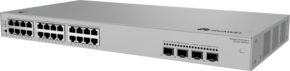 Huawei Data Communication S310S-24P4JX S310S-24P4JX S310S-24P4JX 24x10/100/1000BASE-T ports 400 W PoE+ 2x10GE SFP+ ports 2x2.5GE
