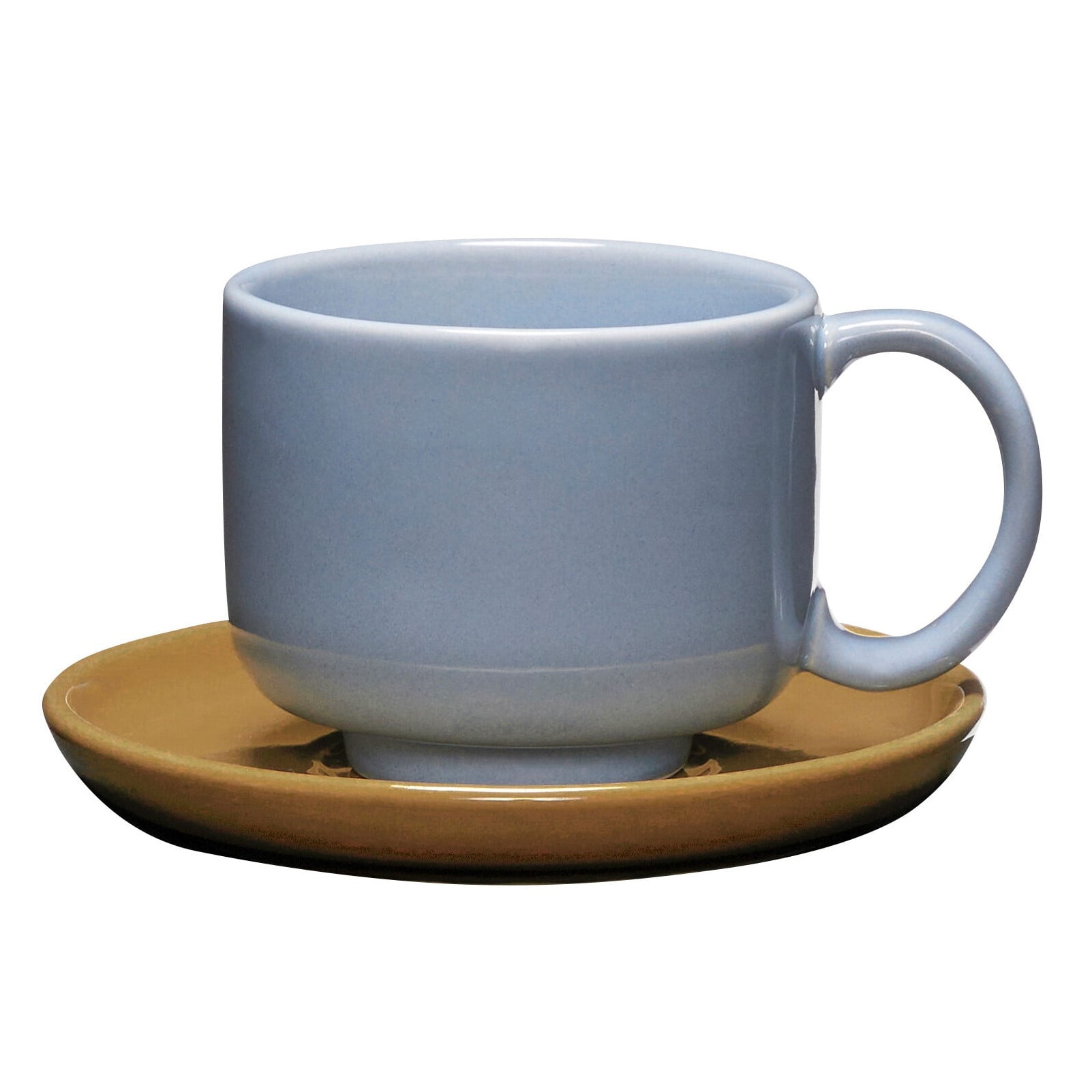 Táto šálka a podšálka je v módnej farebnej kombinácii modrej s hnedou. Sú ručne vyrobené a na dne každého z nich je vyrazené logo značky. Šálka má hrubšie steny, takže udrží vašu kávu alebo čaj dlhšie horúce. Nízky tvar s väčším priemerom robí z hrnčeka ideálny kúsok, ktorý s radosťou uchopíte do rúk a doprajete si svoj obľúbený nápoj. Šálka: objem 200 ml / priemer 9 cm / výška 6 cm