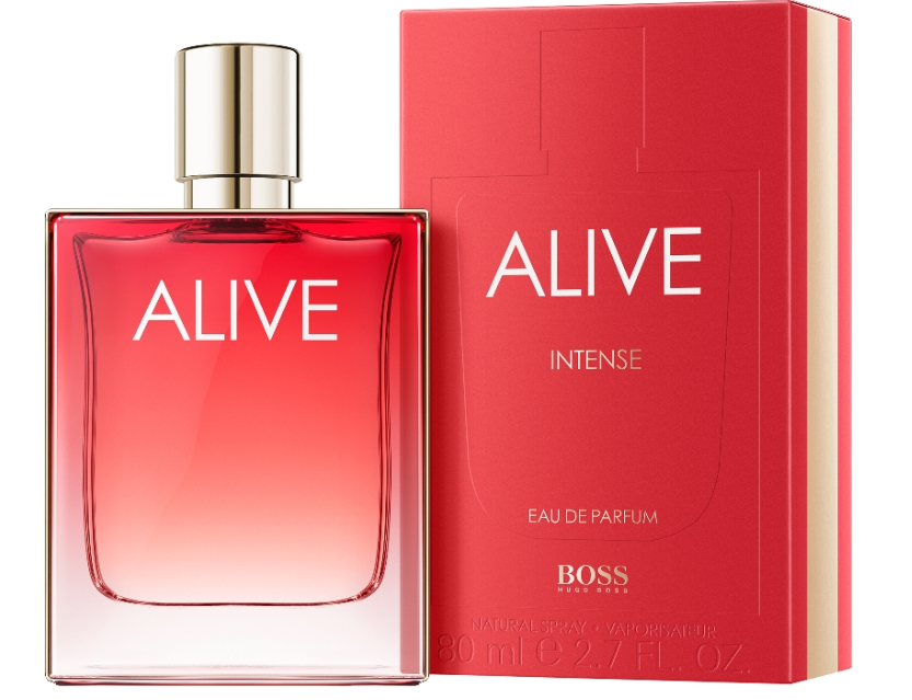 Boss Alive Intense od Hugo Boss je sladká, ovocná parfémová voda s ambrovými podtónmi. Táto vôňa bola stvorená pre všetky odvážne ženy, ktoré si užívajú život plnými dúškami. Táto živá vôňa plná radosti a túžby po dobrodružstve vám pripomenie, že najlepší spôsob, ako si užívať život, je veriť svojim inštinktom, nebáť sa vystúpiť zo svojej komfortnej zóny a problémom čeliť so vztýčenou hlavou as úsmevom na tvári. Táto energická a intenzívna vôňa vyzýva na to, aby ste žili naplno. Vášnivé akordy sladkej maliny odrážajú pôvab hlbokých drevitých akordov vetiveru, ktorých šarm podčiarkne v základe vône teplý drevitý nádych benzoínu. Táto dlhotrvajúca vôňa je skrytá vo flakóne, ktorý je zahalený do malinových odtieňov a ktorý dopĺňajú zlaté detaily, ktoré vám zaistia pocit exkluzivity. Sebavedomie, túžba po živote, odvaha a krása – tieto aspekty vystihujú vlastnosti nositeľky vône Boss Alive Intense. Vôňa bola uvedená na trh v roku 2022.