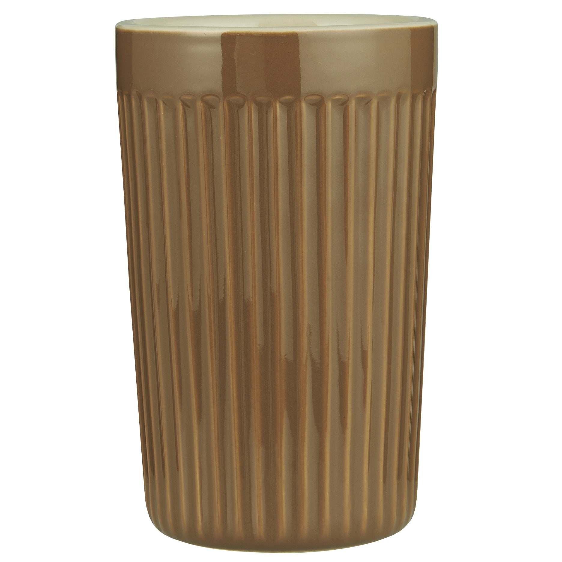 Latte hrnček má jednoduchý valcovitý tvar. Po obvode ho pokrýva orieškovo-hnedý odtieň, ktorým prestupuje plastický dekor v podobe jemných vrúbkov. Tie mu dodávajú ešte atraktívnejší vzhľad. Vnútro je potom vyliate krémovou glazúrou, ktorá spoločne s odtieňom Hazelnut krásne rezonuje.