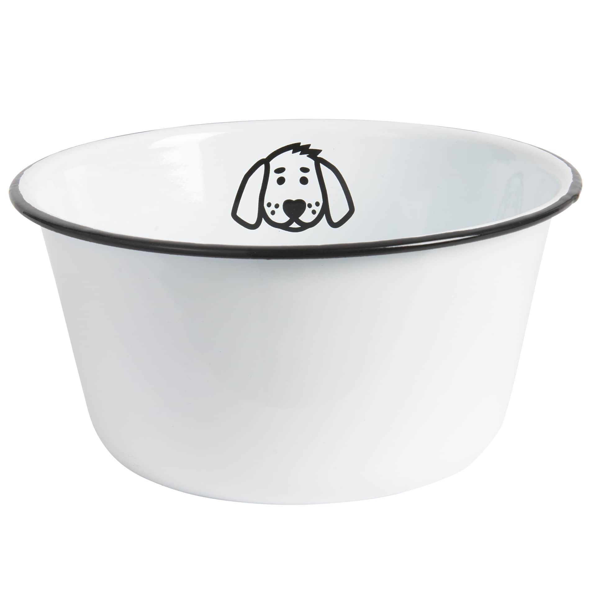 Naservírujte vášmu psíkovi šťavnaté mäsko alebo chrumkavé granule do tejto originálnej retro smaltovanej misky v bielej farbe, ktorú zdobí minimalistický obrázok psíka.