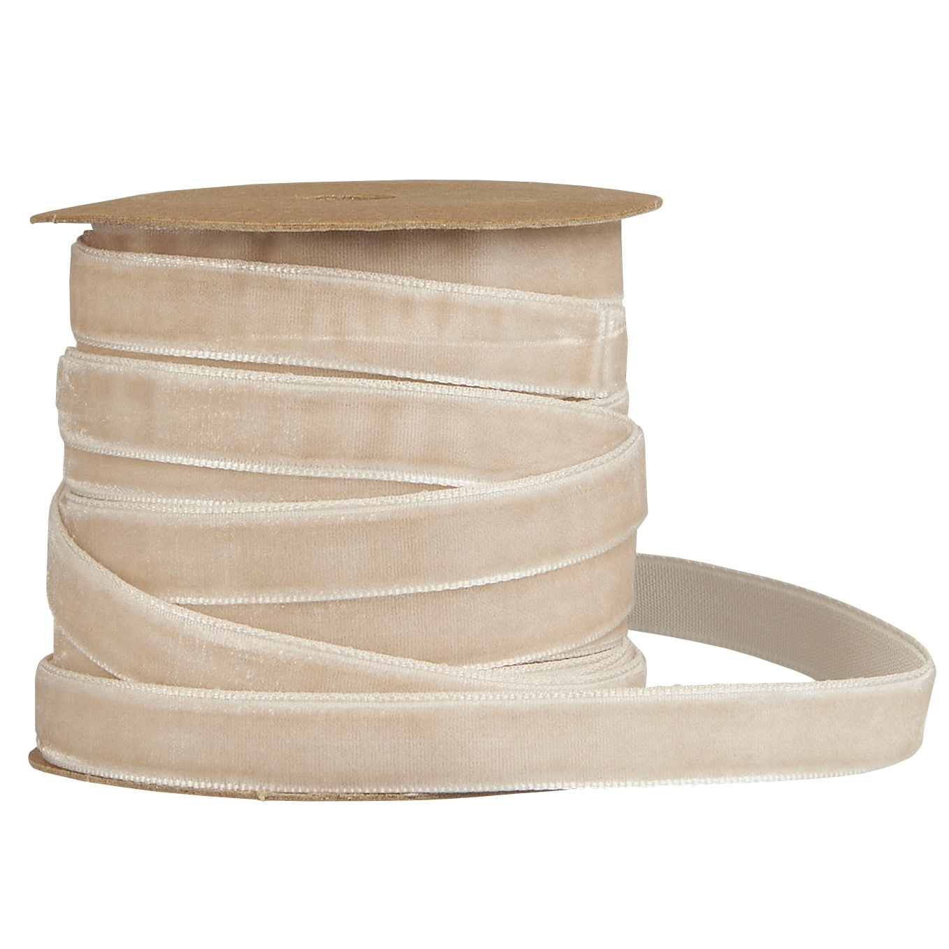 Hebká zamatová stuha v smotanovej farbe bude krásnym detailom na darčekovom balíčku. Bude tiež krásna aj na zavesenie ozdôb, dekorácií, na vence atď. Je navinutá na klasickej papierovej cievke, ktorú možno po spotrebovaní opätovne využiť.