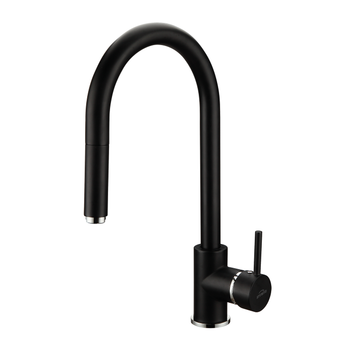 Drezová batéria DUET s výsuvným výtokom je zhotovená v modernom štýle. Je pokrytá vrstvou chrómu nalakovanú v elegantnej čiernej farbe. Inštalácia je určená na drez či dosku. Batéria má jedinečný čierny vzhľad, ktorý dokonale vynikne v každej kuchyni a určite úplne zaujme už na prvý pohľad. Odolný chróm zaistí ľahké a rýchle čistenie. Balenie obsahuje 2 pripojovacie hadice 3/8". (M) (GT) Ean: 5907798705917