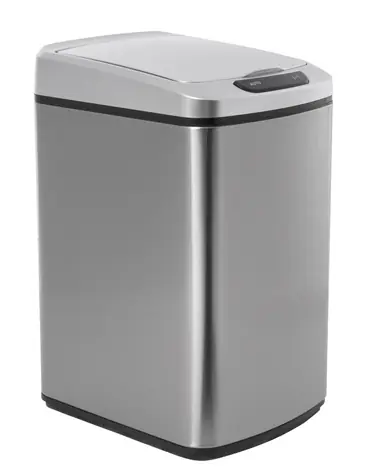 IQtech Quadrat 15 l strieborná / bezdotykový odpadkový kôš / hranatý / rozmery 28x22x41cm / nerez / plast / IR / napája. 4xAA (IQ00050)