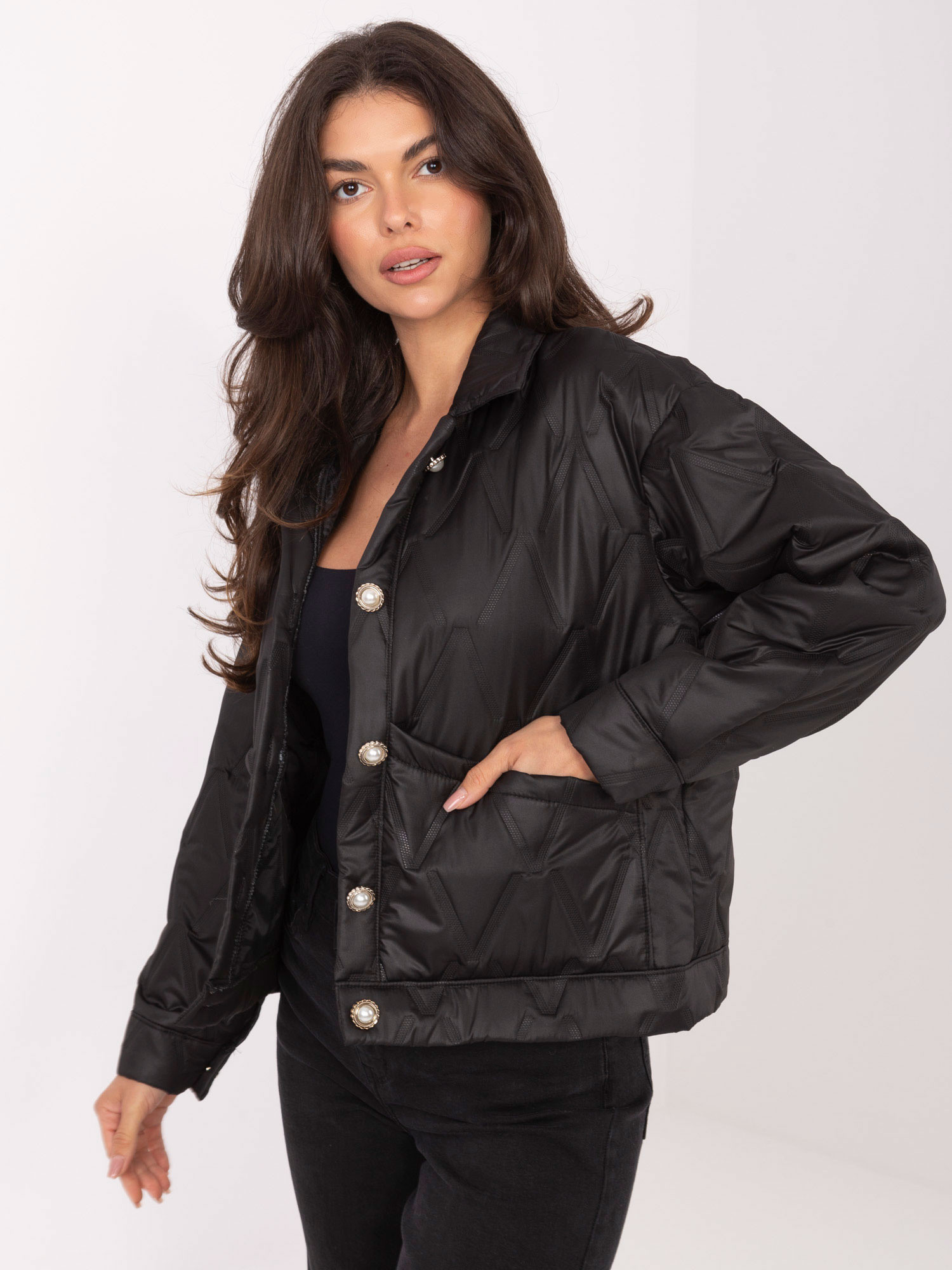 Čierna metalická dámska bunda kapucňou (XW808X) odcienie czerni
