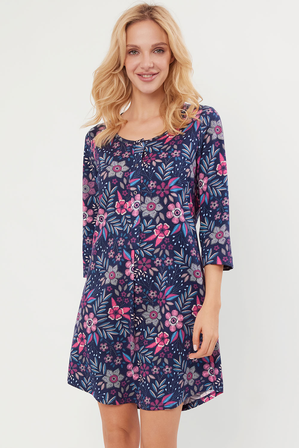 Nočná košeľa značky Italian Fashion. 3/4 veľkosť Ľudový model. Vyrobené zo 100 % bavlny. Dĺžka rukávov: 3/4. Typ výstrihu: okrúhly. Nočná košeľa sa zapína na patentky. Miesto zapínania: vpredu. Dámsky výrobok. Dĺžka: midi.