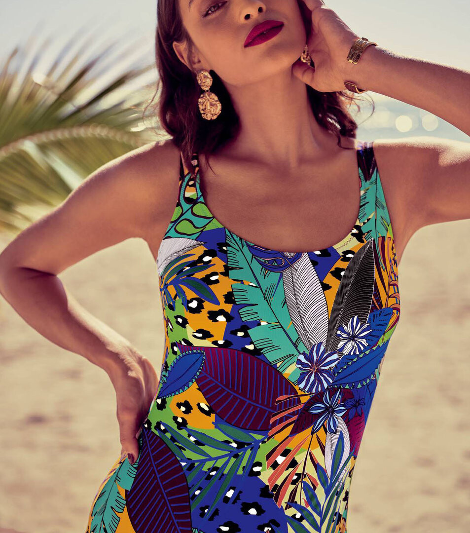 Dámske jednodielne plavky Anita. Celoplošný strih. všité košíčky bez výstuže, s kosticami. ramienka na posúvanie. 76 % polyamid, 24 % elastan