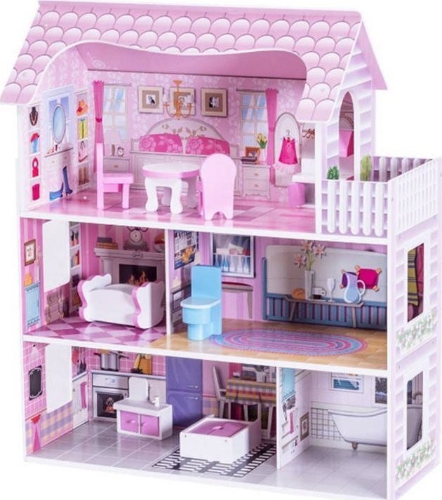 Jokomisiada Domček drevený pre bábiky meble światło led ZA4130
