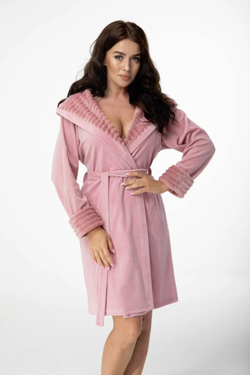 Dámsky župan s kapucňou, viazaný v páse. Zloženie: 80% bavlna, 20% polyester
