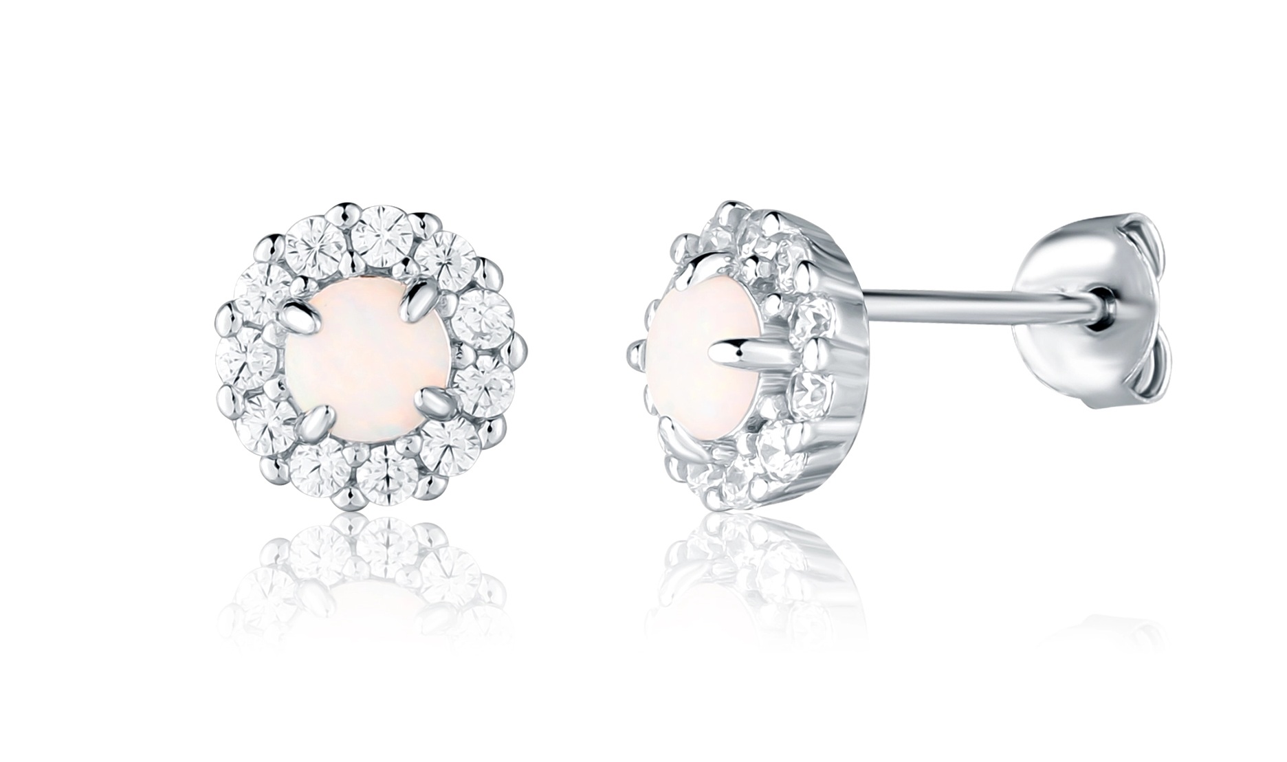 JVD Trblietavé strieborné náušnice s umelým opálom SVLE3034X61O100