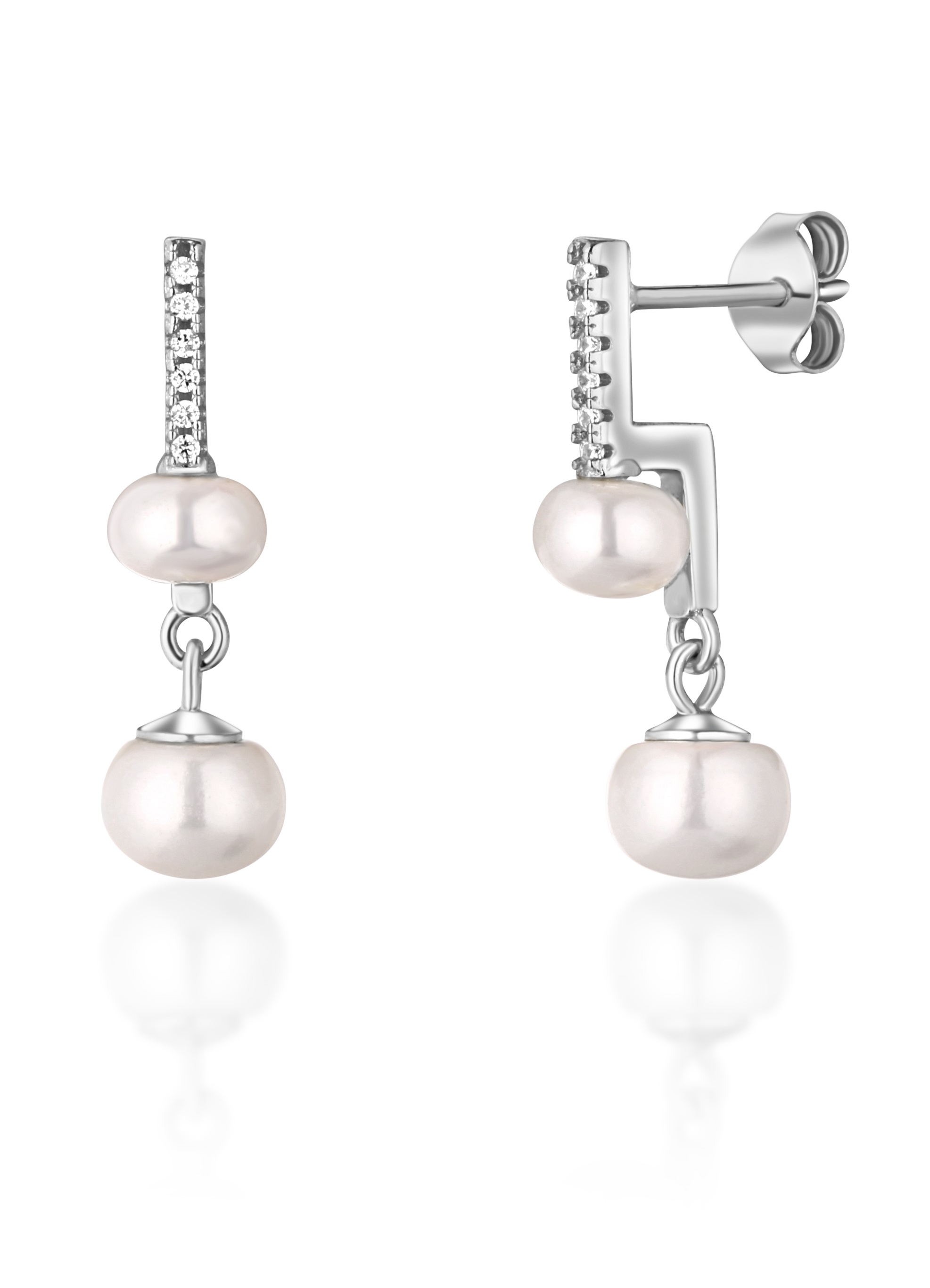 JwL Luxury Pearls Nápadité strieborné náušnice s pravými perlami a zirkónmi JL0773