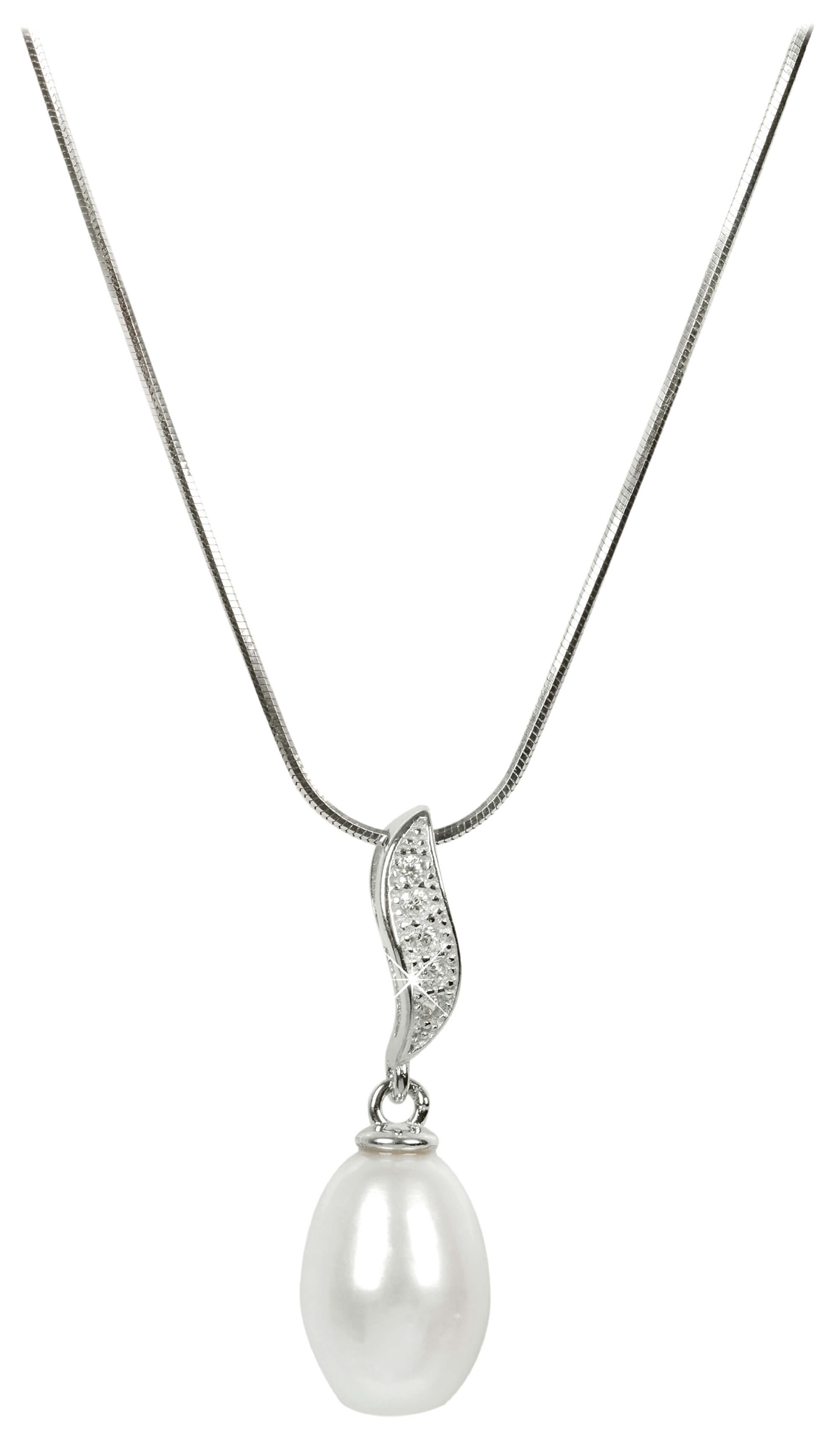 JwL Luxury Pearls Strieborný náhrdelník s perlou a zirkónmi JL0200 (retiazka, prívesok)