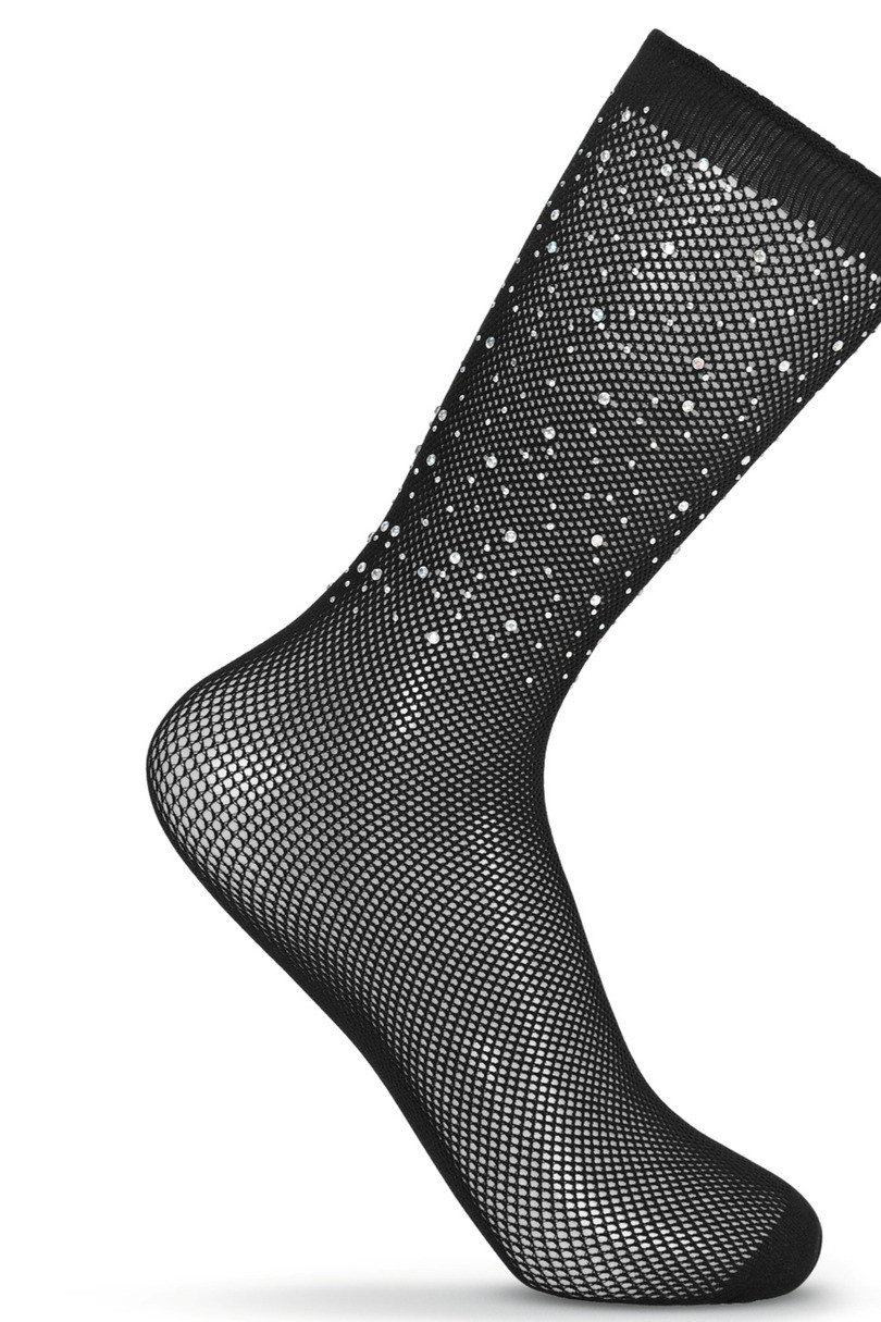 Dámska kabaretná ponožka s ozdobným štrasovým lemom.