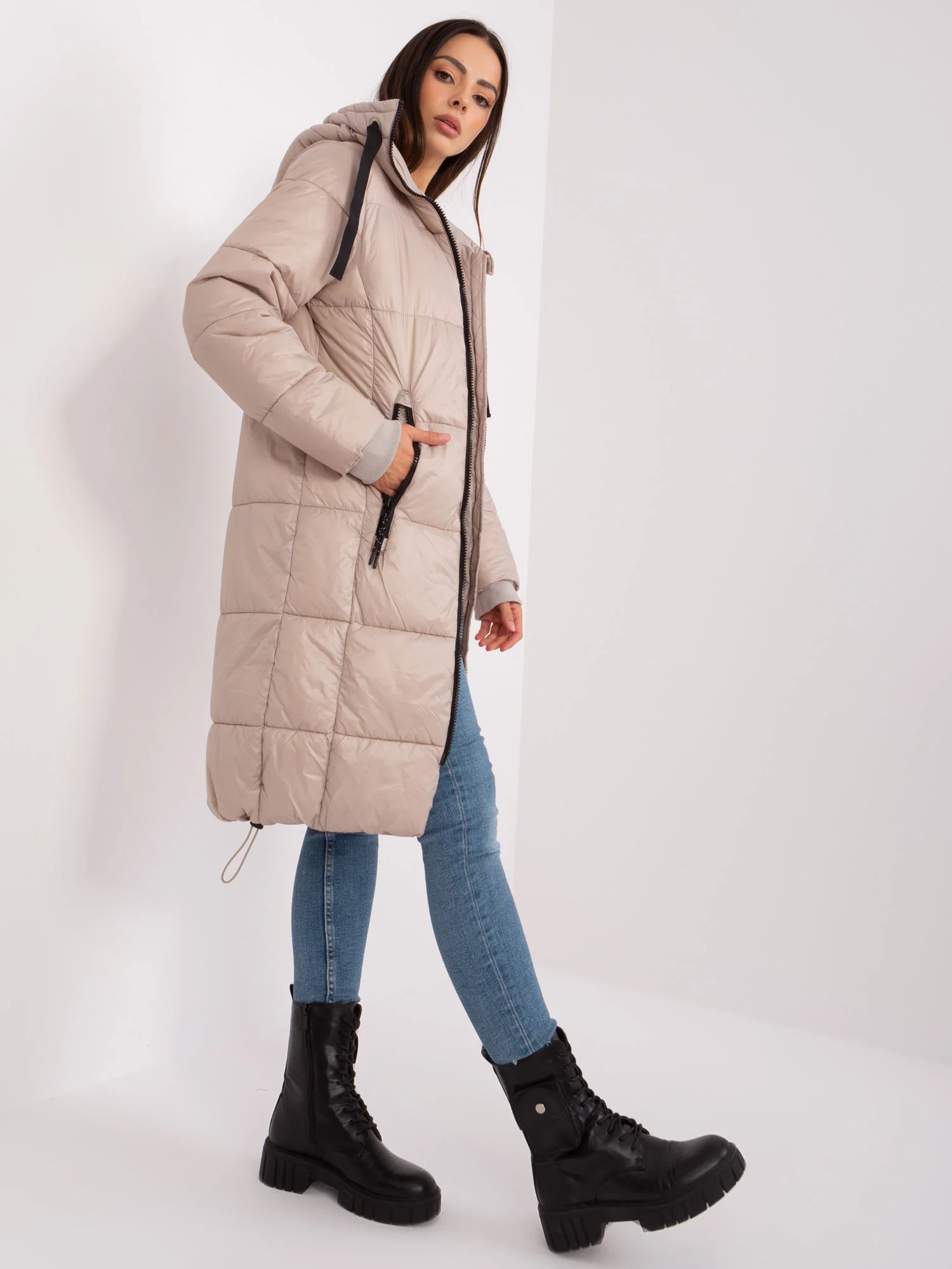 Béžový dámsky kabát rôznych spojených materiálov (M206) Béžová