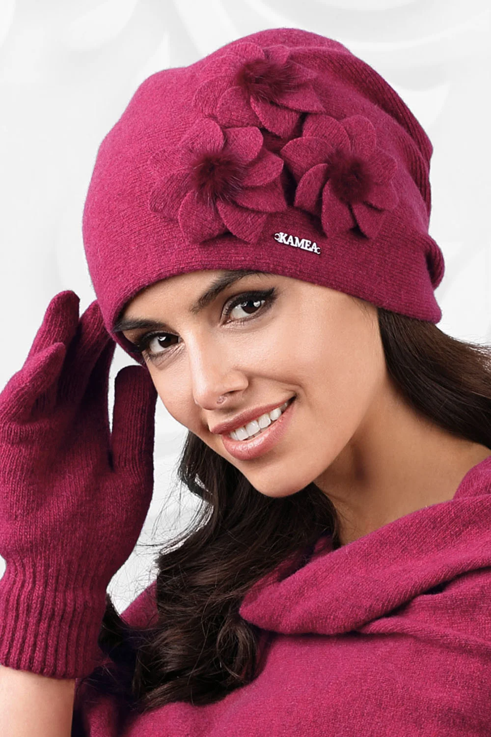 Dámska pokrývka hlavy značky Kamea, model Teramo. Výrobok je vyrobený z 80 % vlny, 20 % polyamidu. Vlastnosti výrobku: vlna.
