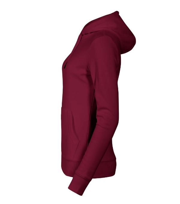 ľahko priliehavý strih s bočnými švami kapucňa s podšívkou, sťahovacia šnúrka pri krku s páskou vo farbe vonkajšieho materiálu nakladané klokanie vrecko spodný okraj a manžety rukávov z rebrového úpletu 2:2 s 5 % elastanu vnútorná strana česaná