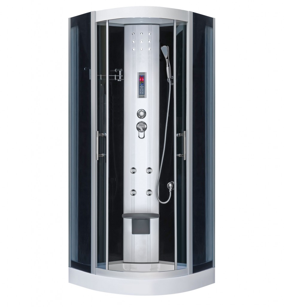 Hydromasážna kabína Leticia 80 so sprchovou vaničkou Technické údaje: Rozmery: Výška: 218,5 cm Šírka: 80 cm Hĺbka: 80 cm Hliníkové profily saténové 4mm tvrdené grafitové sklo Dvojité posuvné dvere Rozmery sprchovej vaničky: Výška: 15,5 cm Šírka: 80 cm Hĺbka: 80 cm Celková hĺbka: 5 cm Šírka vstupu do kabíny: 44 cm Jednoprúdové pohyblivé hydromasážne trysky 3 typy trysiek v sprchovej hlavici Kabína je vybavená ovládacím panelom, ventilátorom, rádiom, LED osvetlením a sklenenou policou so zábradlím. odtok, otočná zátka súčasťou balenia (GT) Ean: 5907548105080