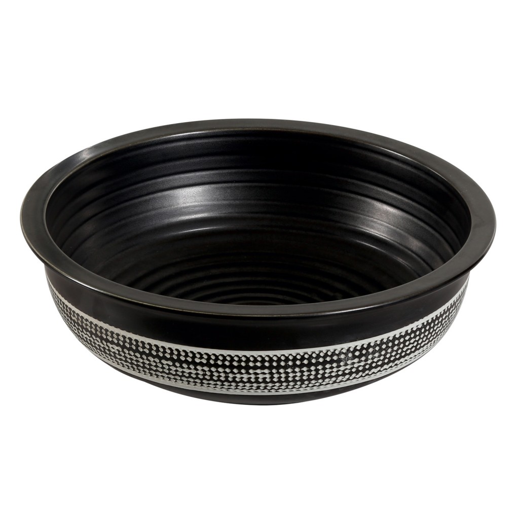 Čierne umývadlo na dosku s bielymi dekoráciami. Dáta: Materiál - sanitárna keramika Farba - čierna + biele dekorácie Tvar - okrúhly Žiadny prestup Bez otvoru pre batériu(GT) Ean: 5907548118257