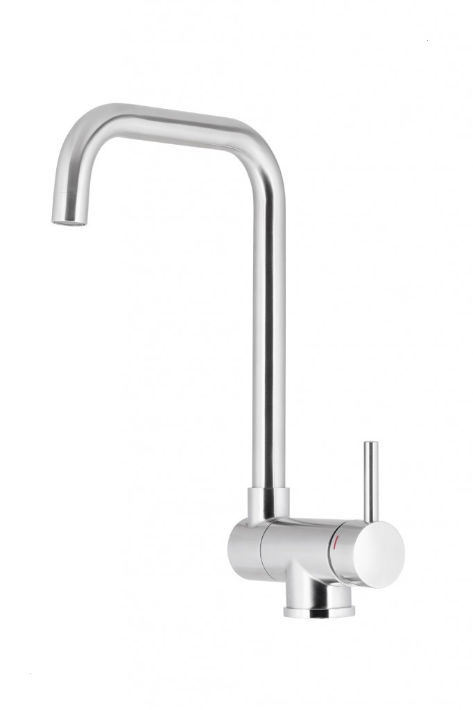 Theta je jednopáková, stojanková kuchynská batéria s jedinečným tvarom. Toto riešenie je určené pre drezy umiestnené pod oknom, pretože batéria má úplne sklopnú výlevku - rozsah pohybu je 90 ° av zloženom stave je jej výška iba 6,6 cm. Pre väčšie pohodlie je výtok otočný a rukoväť bola predĺžená na zaistenie ergonomického použitia. (GT) Ean: 5907571680011