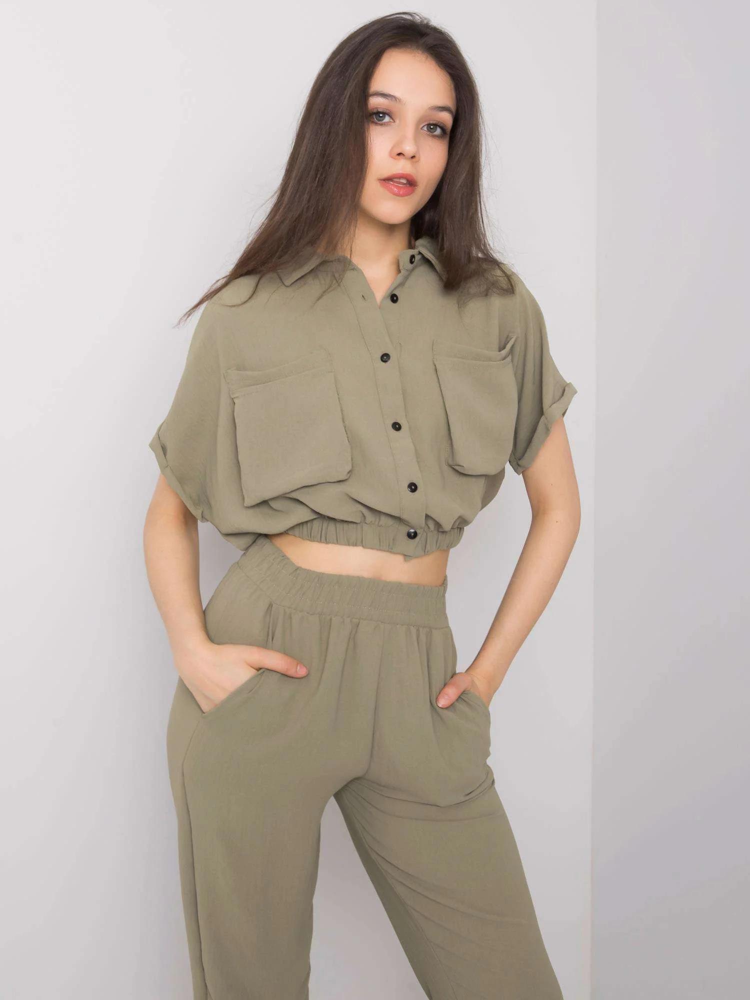 RUE PARIS Khaki ležérna súprava . sada obsahuje: nohavice, blúzku Zloženie materiálu: 95% polyester, 5% elastan spôsob prania: pranie v práčke na 30 °C Modelka má na sebe veľkosť S. Rozmery modelky: výška 173 cm, poprsie 78 cm, pás 60 cm, boky 90 cm. Rozmery súpravy vo veľkosti S merané na plocho: šírka v podpazuší - 53 cm, dĺžka blúzky - 40 cm, šírka v páse - 33 cm, dĺžka nohavíc - 89 cm Veľkosť Alt.Výška Obvod hrudníka hrudník Externé. dĺžka. rukáv Vnútorné. dĺžka rukávov S 36 160-164 82 59 49 M 38 162-172 86 61 51 L 40 164-174 91 63 53 XL 42 166-178 96 65 55