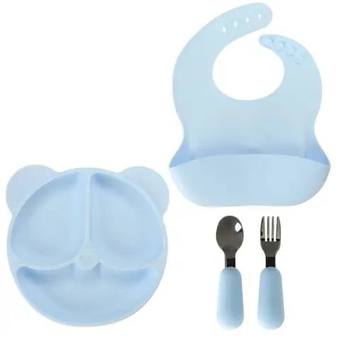 KIK Silikónová sada riadu pre deti Medveď Modrá / 4 ks