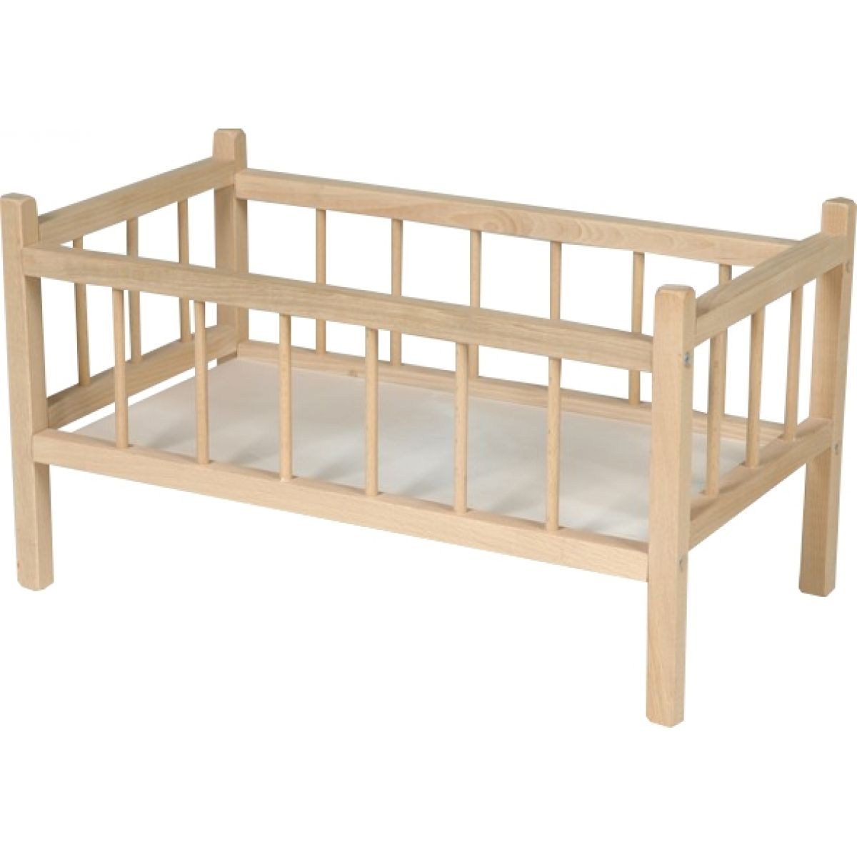 Drevená postieľka zanechaná v prírodnom odtieni je určená pre bábiky do veľkosti cca 45 cm. Vyrobená z tuzemských drevín.