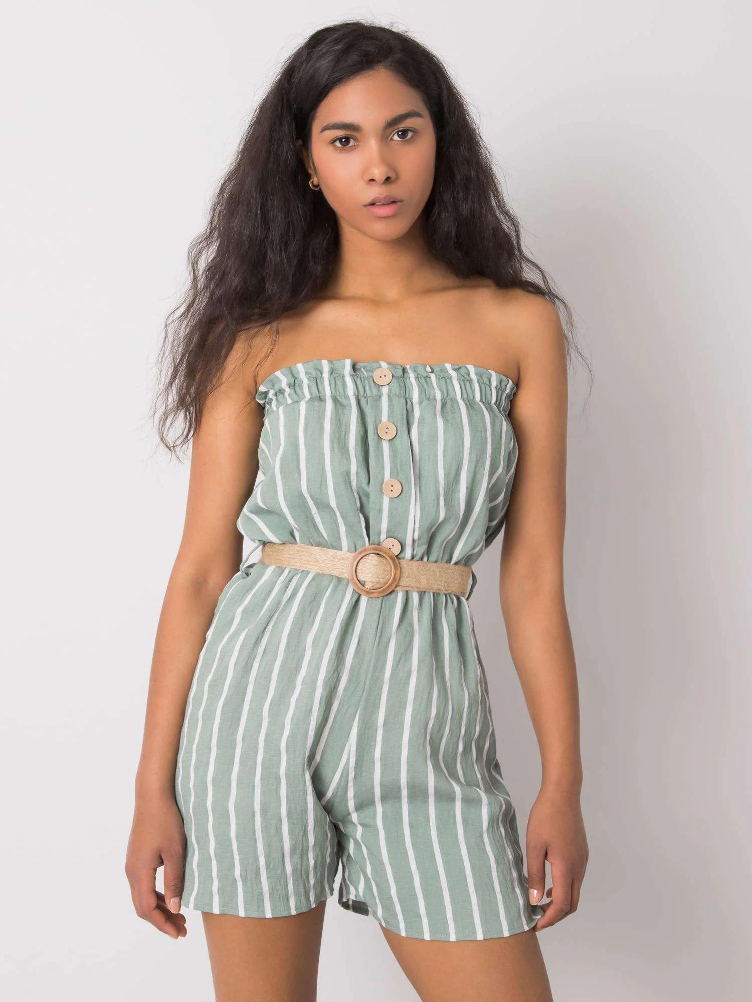 RUE PARIS Dámsky zeleno-biely overal . Príslušenstvo: opasok, elastický opasok zloženie látky: 50% polyester, 50% bavlna spôsob prania: pranie v práčke na 30 °C Modelka má na sebe veľkosť S. Rozmery modelky: výška 174 cm, poprsie 84 cm, pás 60 cm, boky 90 cm. Merané na plocho: šírka v podpazuší - 34 cm, dĺžka nohavíc - 41 cm, celková dĺžka - 65 cm Medzinárodná veľkosť Výška Obvod pása Obvod bokov Vonkajšia dĺžka nohavíc Dĺžka vnútornej nohavice S 36 160-168 72-80 90 87 74 M 38 162-172 78-86 94 90 75 L 40 164-174 84-90 102 94 76
