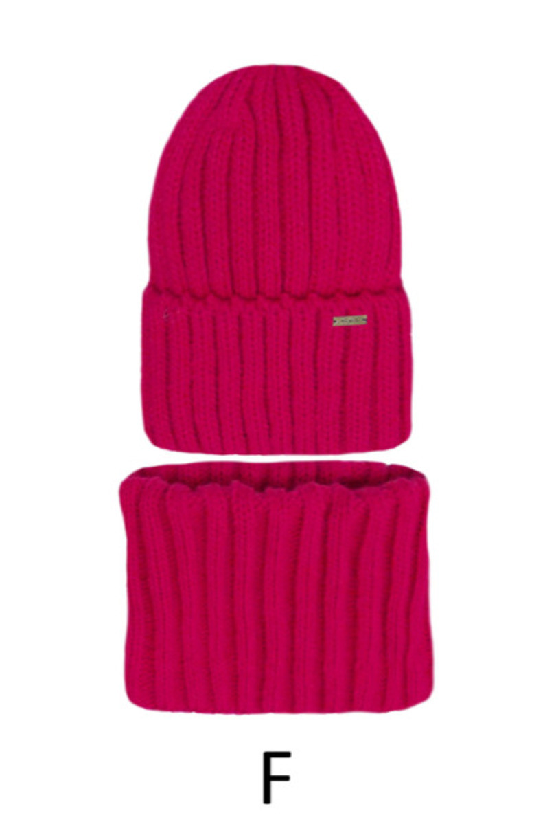 Dámska/mladá dámska zimná súprava v širokom strihu, pozostávajúca z módnej čiapky so širokým okrajom a komínovej čiapky. Mäkká na dotyk, pohodlné vlasy, dobre chráni pred chladom .