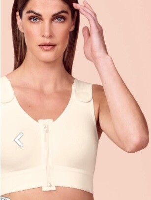 Dámska chirurgická podprsenka s obojstranným vkladaním epitézy. Podprsenka je nevystužená, bez kostice. Je navrhnutá tak, aby poskytovala rovnomerný kompresný tlak na ranu. Zapínanie vpredu na zips. Silné pohodlné ramienka so zapínaním na suchý zips. Pod prsiami hrubý elastický lem pre kvalitné a pohodlné nosenie. 60 % bavlna, 25 % elastan, 10 % polyamid, 5 % polyester