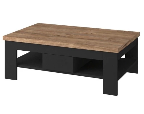 Konferenčný stolík Boston v kombinácii matne čiernej farby a drevodekoru dub ribbeck ponúka praktické úložné priehradky a zásuvky, ideálny pre moderný interiér.