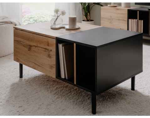 Konferenčný stolík s úložným priestorom Lona, dub artisan/čierny%